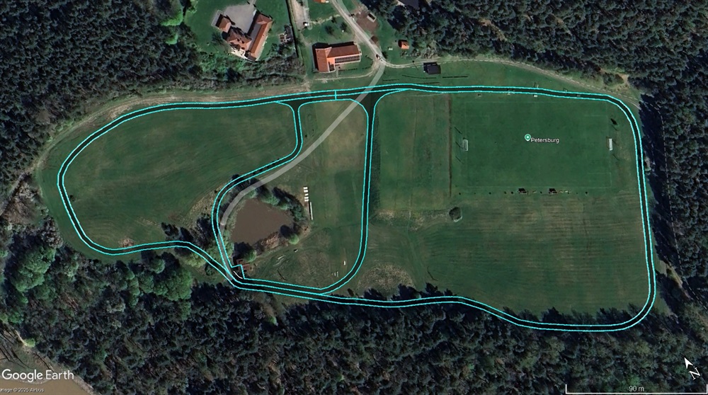 Asfaltsbanan är tänkt att bestå av en yttre slinga på ca 1000 meter och en inre på ca 400 meter. Båda slingorna har en spårbrädd på 3,5 meter. En målad bandelning kommer att finnas på de sträckorna där slingorna går parallellt. Utanför yttre slingan kommer vi fortfarande ha ett löparspår på gräs.